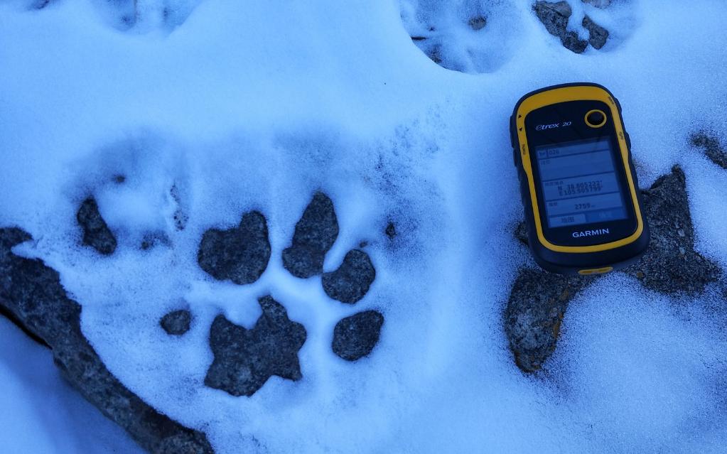 12月1日,专业技术人员在贺兰山内蒙古段哈拉乌南沟拍摄到的雪豹足迹。(受访单位供图)