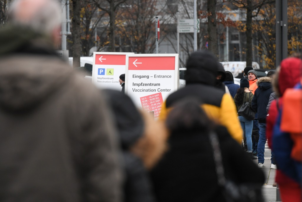 11月25日,在德国法兰克福,人们在一处新冠疫苗中心外排队等待接种疫苗。(新华社记者逯阳摄)