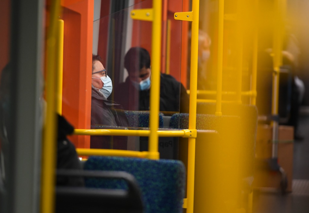 11月25日,在德国法兰克福,戴口罩的旅客乘坐地铁。(新华社记者逯阳摄)