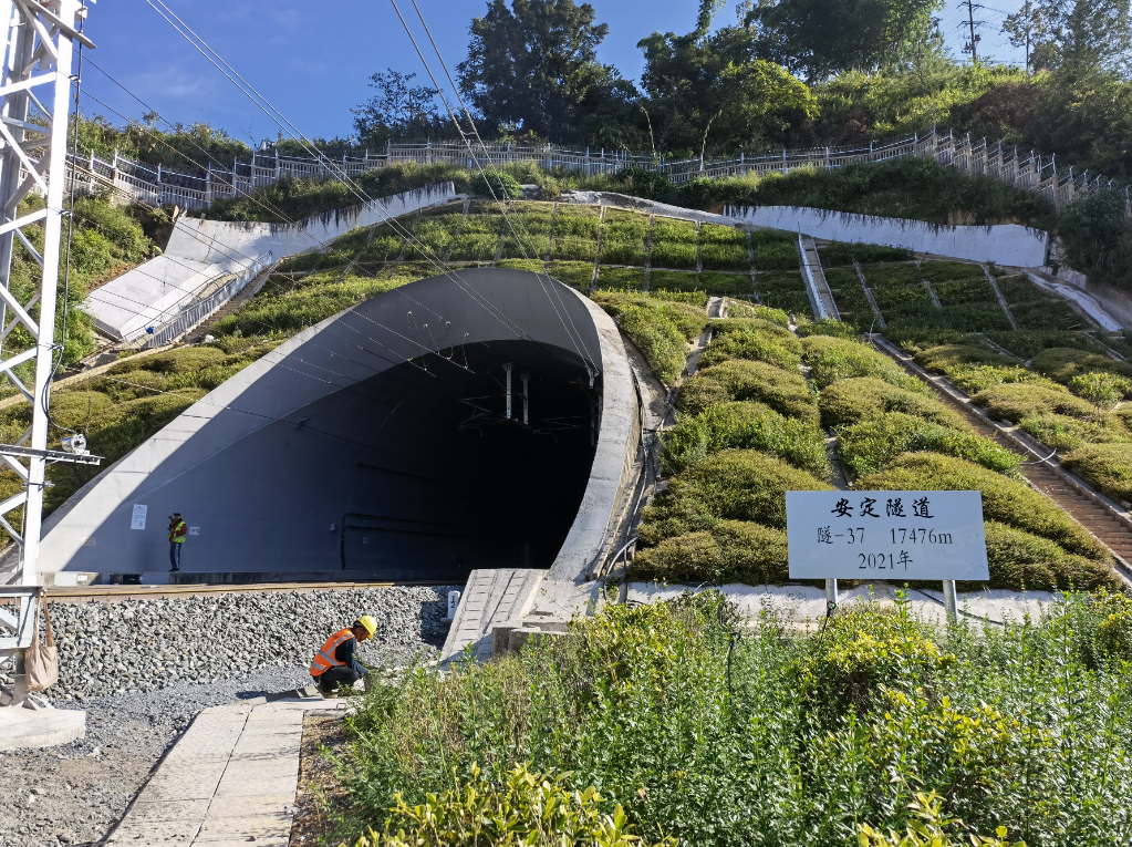 突泥、涌水是制约安定隧道如期贯通的难点。施工中,建设者创新工艺工法,采取双层支护控制,采用大管棚锁脚等有效措施,克服诸多困难。2020年11月,中老铁路第一长隧道终于贯通。