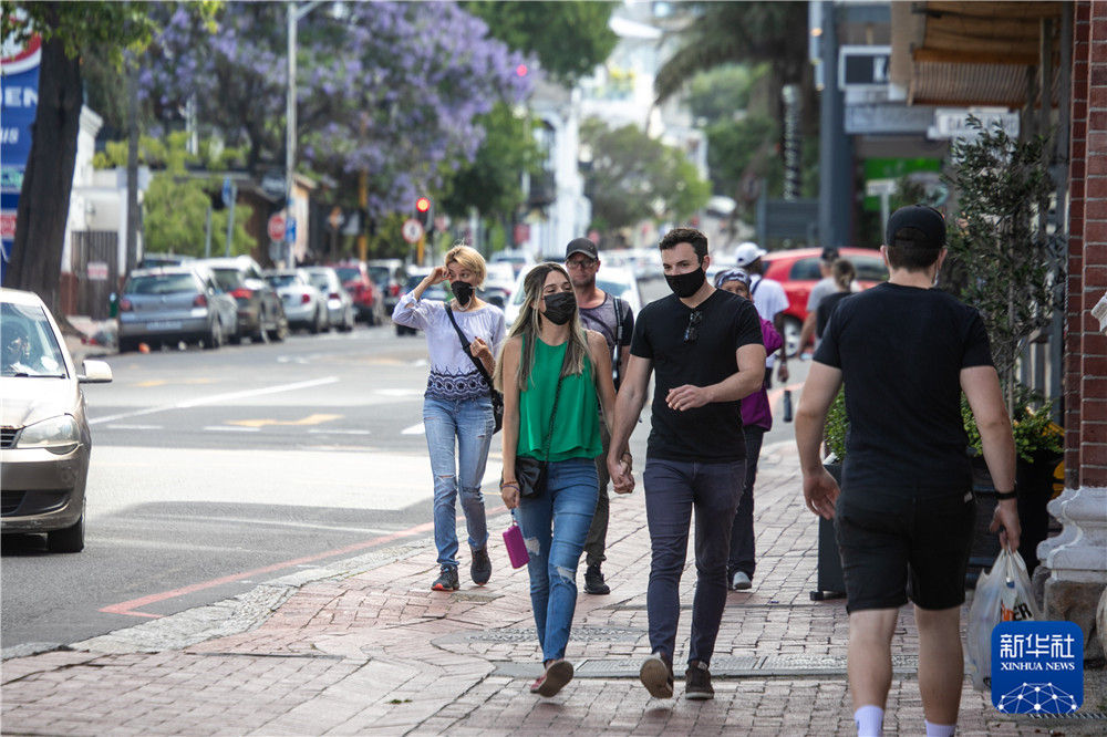 11月28日,人们走在南非开普敦的一条商业街上。新华社记者 吕天然 摄