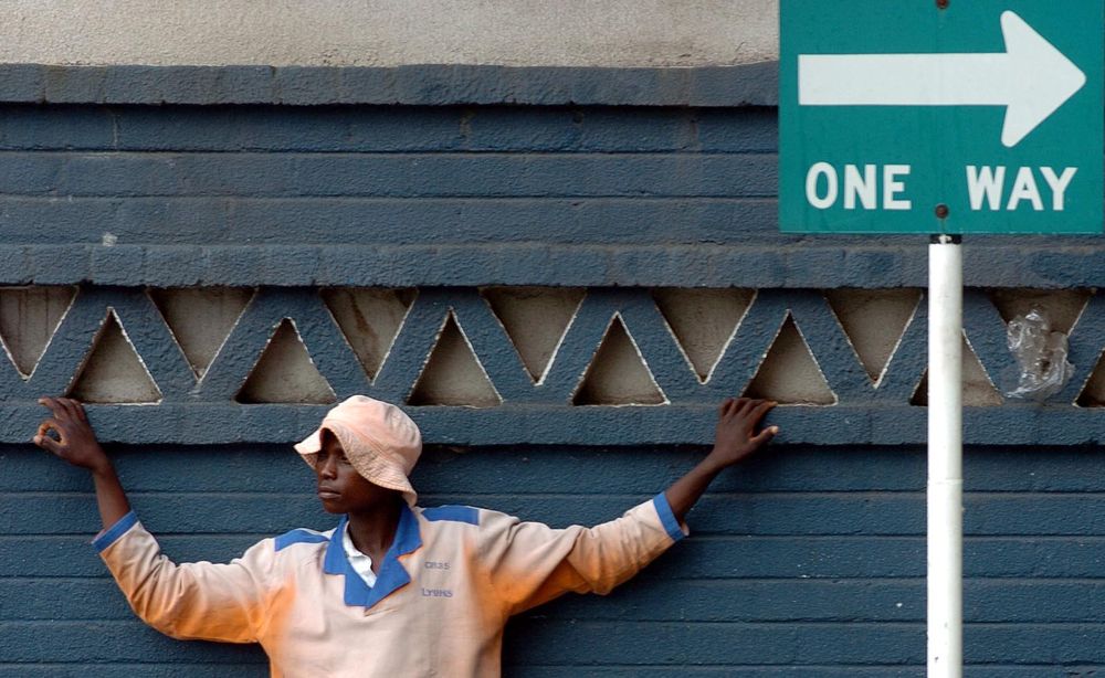 2005年4月5日,刚刚失去工作的津巴布韦青年约翰尼在哈拉雷街头寻找工作。新华社记者杨磊摄
