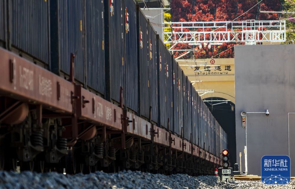 ↑12月4日,货物列车即将驶入位于中老边境的友谊隧道。