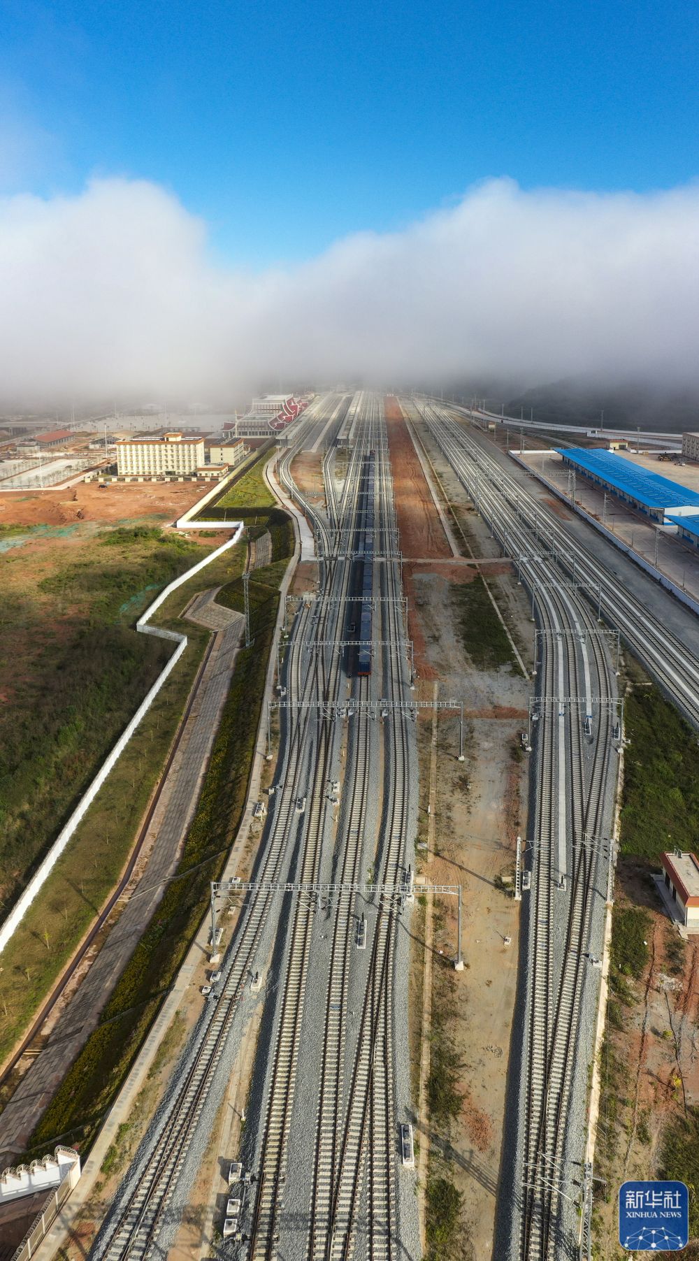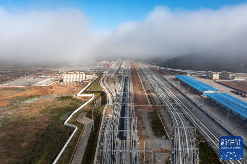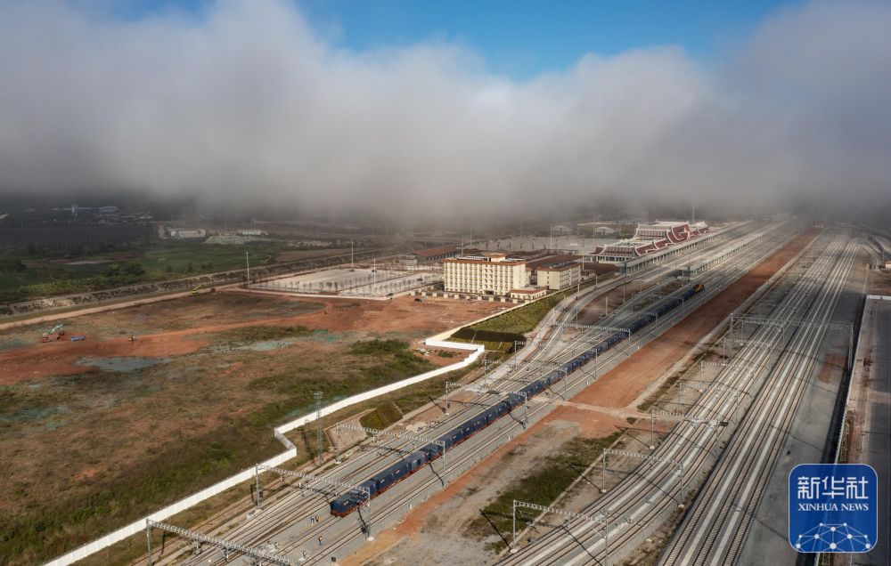12月4日清晨,从昆明站始发、满载货物的国际货物列车抵达磨憨铁路口岸,随后这趟列车将穿过友谊隧道前往老挝。这是中老铁路开通后开行的首趟国际货物列车。