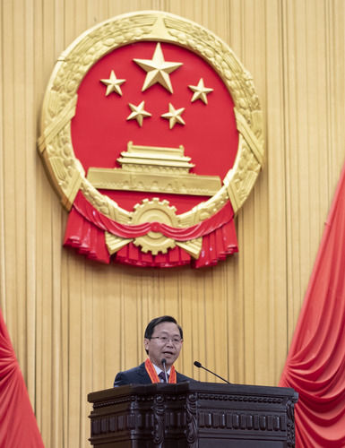 全国抗击新冠肺炎疫情先进个人、全国优秀共产党员、北京协和医院感染内科主任医师刘正印发言。新华社记者 谢环驰 摄