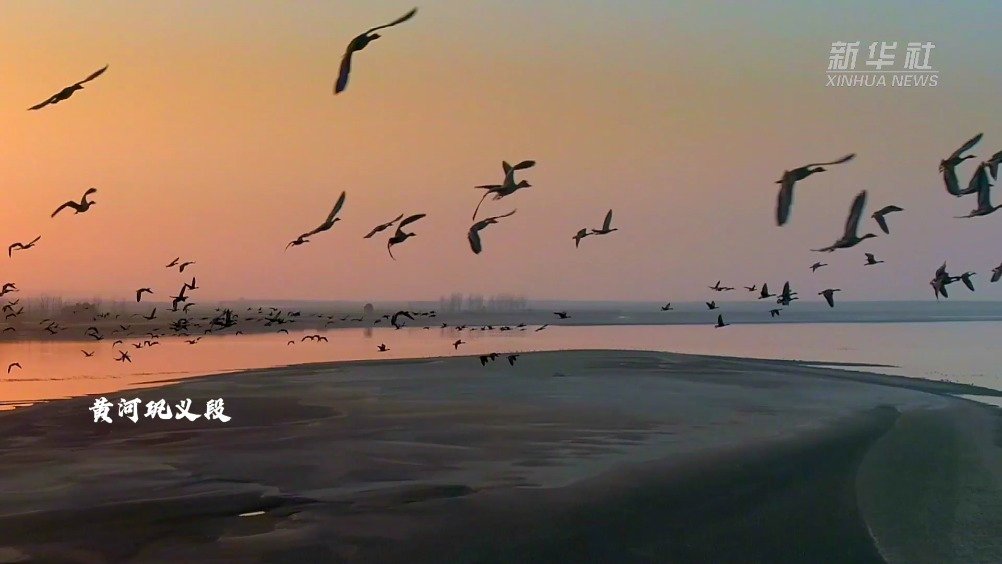 【#长河披霞处万鸟戏余晖#】近日,黄河中下游巩义段吸引了成千上万的豆雁、斑嘴鸭、绿头鸭等迁徙候鸟在此停留。日落时分,霞光绚烂,群鸟身披余晖翱翔天空,绘就一幅和谐壮丽的生态画卷。(记者张彩霞、任卓如) 新华社的微博视频