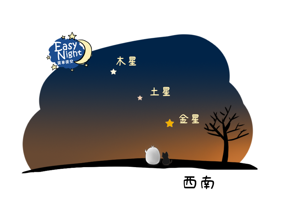 进入12月,每晚入夜后,如果天气晴好,公众抬头望向西南方天空,可以看见三颗明亮的星星排成一行,在暮色中闪烁。