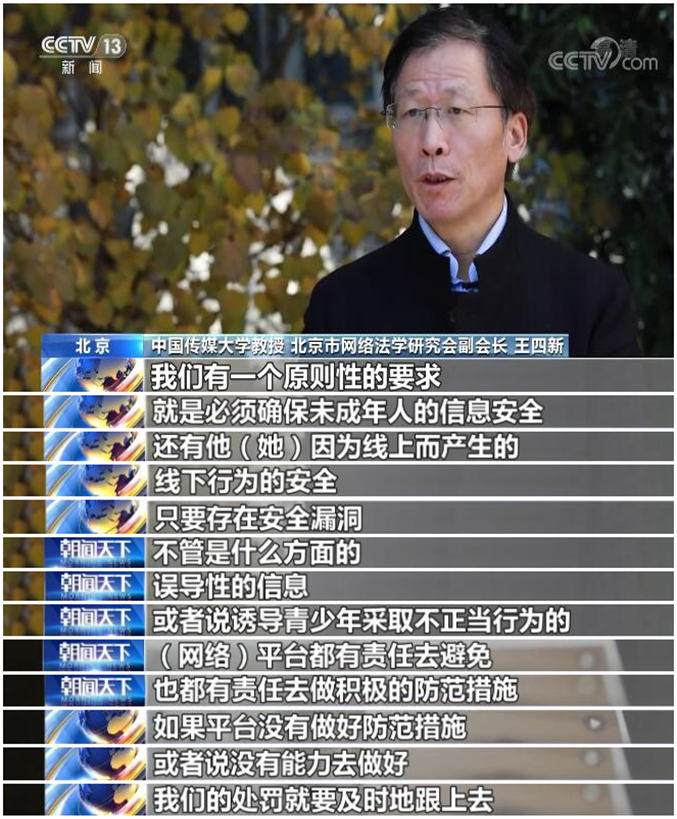 而对于实名注册的问题,自2017年6月1日网络安全法实施以来,涉及到互联网社区的管理规范相继出台,明确了在互联网论坛社区服务、跟帖评论服务、群组信息服务以及公众账号信息服务中实行“后台实名、前台自愿”原则。法律学者指出,网络平台忽视相关的法律法规造成未成年人权益受损,也必将受到法律问责。