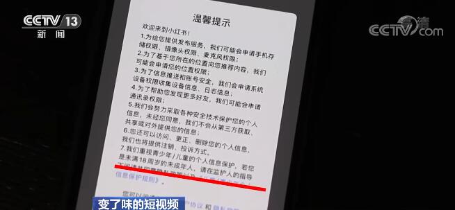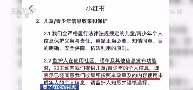 “小红书”工作人员表示由于短视频数量多,造成了审核的漏洞。而记者发现,在“小红书”APP的用户协议中特别指出“重视青少年儿童的个人信息保护”,但在其《儿童青少年个人信息保护规则》协议中却注明“监护人在使用社区、晒单及其他信息发布功能时,如主动向我们提供儿童青少年的个人信息,即表示已经同意我们收集和按照本政策的内容使用未成年人的个人信息。”