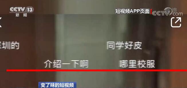 在几条短视频中记者发现,视频拍摄者都是未成年人本人,拿手机自拍时镜头直接对准了自己的隐私部位。在一个短视频中,位置坐标显示为深圳,该短视频下方加注了“深圳校服”字样。而记者发现,这条长约1分钟的短视频内容是尾随一名身穿校服的女学生一路走过教室,最终进入了女厕所。视频提供的“弹幕功能”中,有人留言问“这是哪所学校的校服”,还有人要求短视频发布者“介绍一下”。