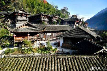 【#鄂西山区古寨冬韵#】冬日,位于鄂西山区湖北省宣恩县的彭家寨古吊脚楼群别有一番韵味。良好的自然生态与古寨的特色民居,构成一幅美丽的田园画卷。