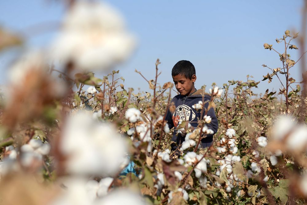 11月8日,在阿富汗坎大哈省,一名儿童采摘棉花。新华社发(萨瑙拉摄)