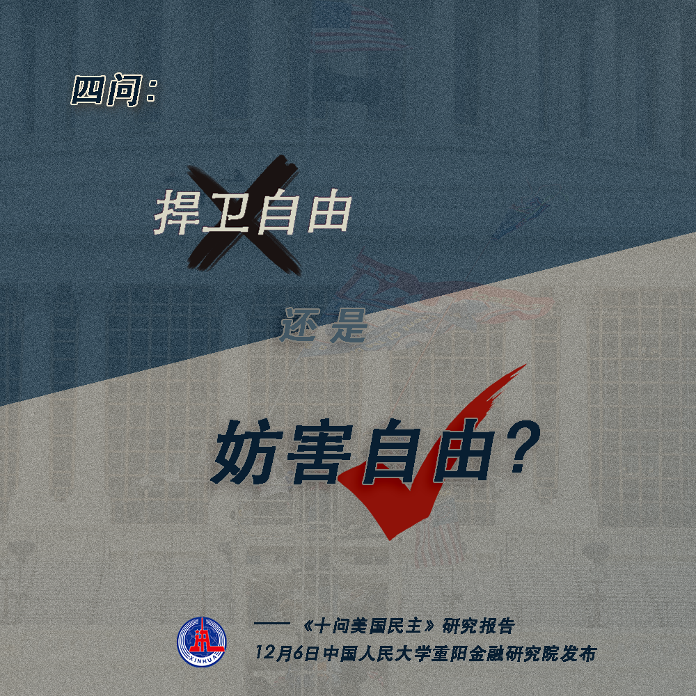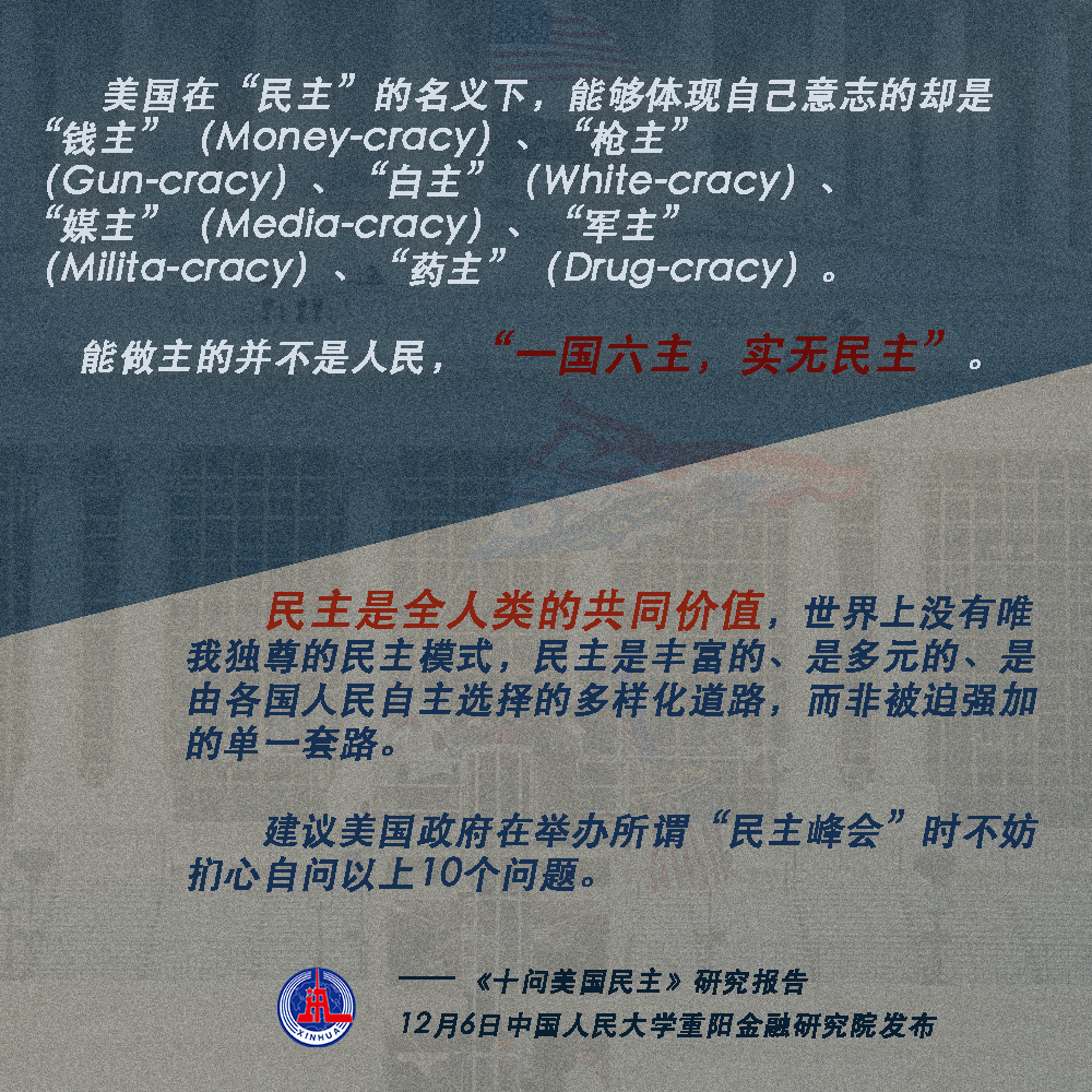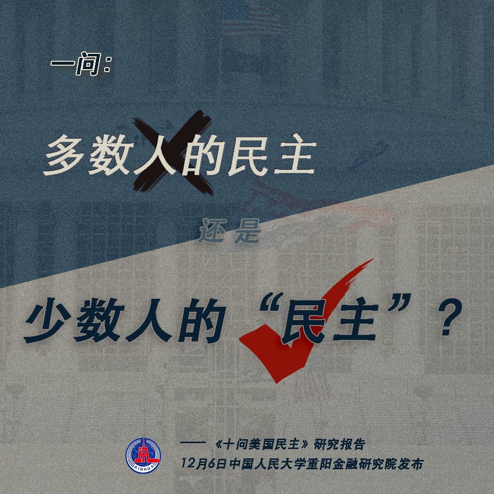 12月6日,中国人民大学重阳金融研究院发布《十问美国民主》研究报告,对美国民主提出尖锐十问。以“民主灯塔”自居、还将举行所谓“民主峰会”的美国,其民主真相如何?一起来看组图: