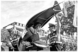 从12月1日起,安徽省阜南县交警联合交通运输、城管等部门在道路上依法查处、纠正电动自行车非法改装、变更车辆外部结构等违法行为。 本报通讯员 吕乃明 摄