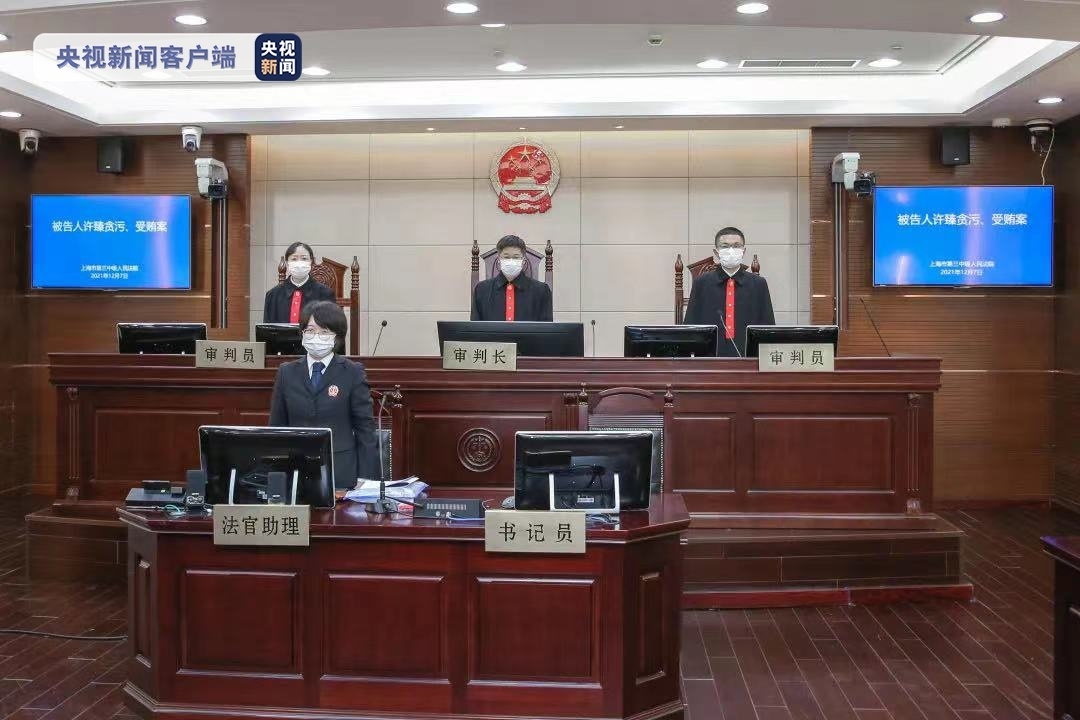 2021年12月7日上午,上海市第三中级人民法院对银行间市场清算所股份有限公司原党委书记、董事长许臻涉嫌贪污、受贿案作出一审判决,以贪污罪判处被告人许臻有期徒刑三年,并处罚金人民币三十万元;以受贿罪判处被告人许臻有期徒刑十年,并处罚金人民币一百万元;决定执行有期徒刑十一年,并处罚金人民币一百三十万元。扣押在案的赃款人民币五百万元、冻结的股票及孳息均予以没收。
