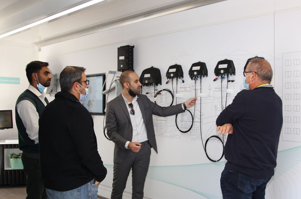 12月2日,在塞浦路斯首都尼科西亚举行的“点亮未来”5G展车路演活动上,工作人员向来宾介绍展车上的设备。(新华社记者郭明芳摄)
