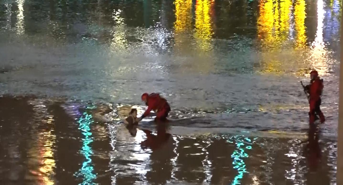 被困人员为一名女子,位于河流中央地势较高的地方,距离较近侧岸边约70米,两侧水位很深,水流湍急,又因夜晚气温较低,江水寒冷,被困人员虽有意识但已经无法动弹,随时有生命危险。