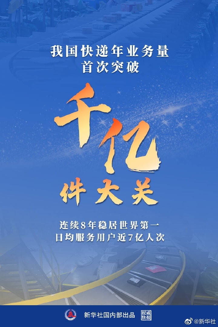 【#权威快报#|#我国快递年业务量首次突破千亿件大关#】12月8日,国家邮政局快递大数据平台实时监测数据显示,2021年我国快递业务量已达1000亿件,这是我国快递年业务量首次突破千亿级别,已连续8年稳居世界第一,日均服务用户近7亿人次。(记者戴小河,海报设计杨轶群)