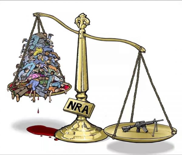 美媒刊登漫画,讽刺反对管控枪支的利益集团。