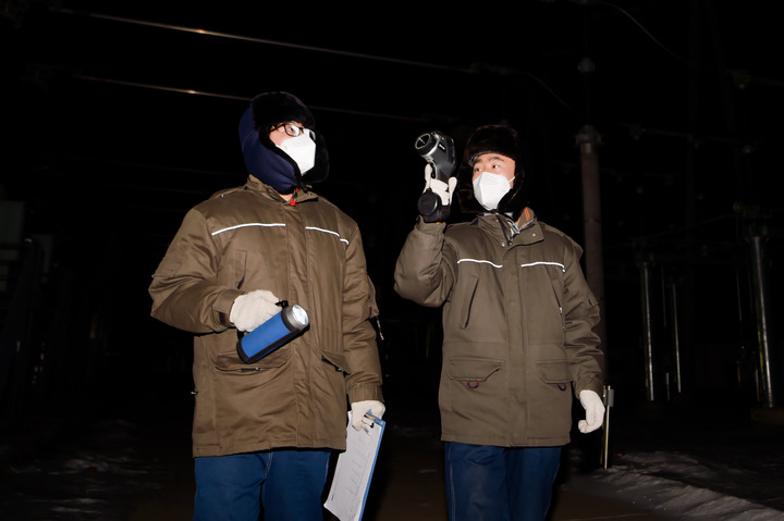国家电网满洲里220千伏变电站位于满洲里市西郊,负责给全市三分之一的用户供电。夜越来越深,“95后”值班员王东亚和同事拿着测温设备,开始对户外输变电设备进行检查。他们深一脚浅一脚地踩着雪,仔细检查高压开关外的伴热带是否正常工作。“我们怕冷,设备更怕冷,天越冷越要加强巡视。”王东亚说。