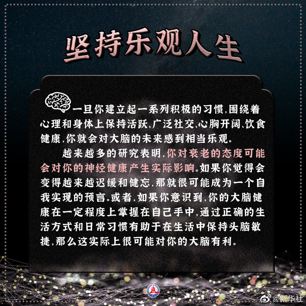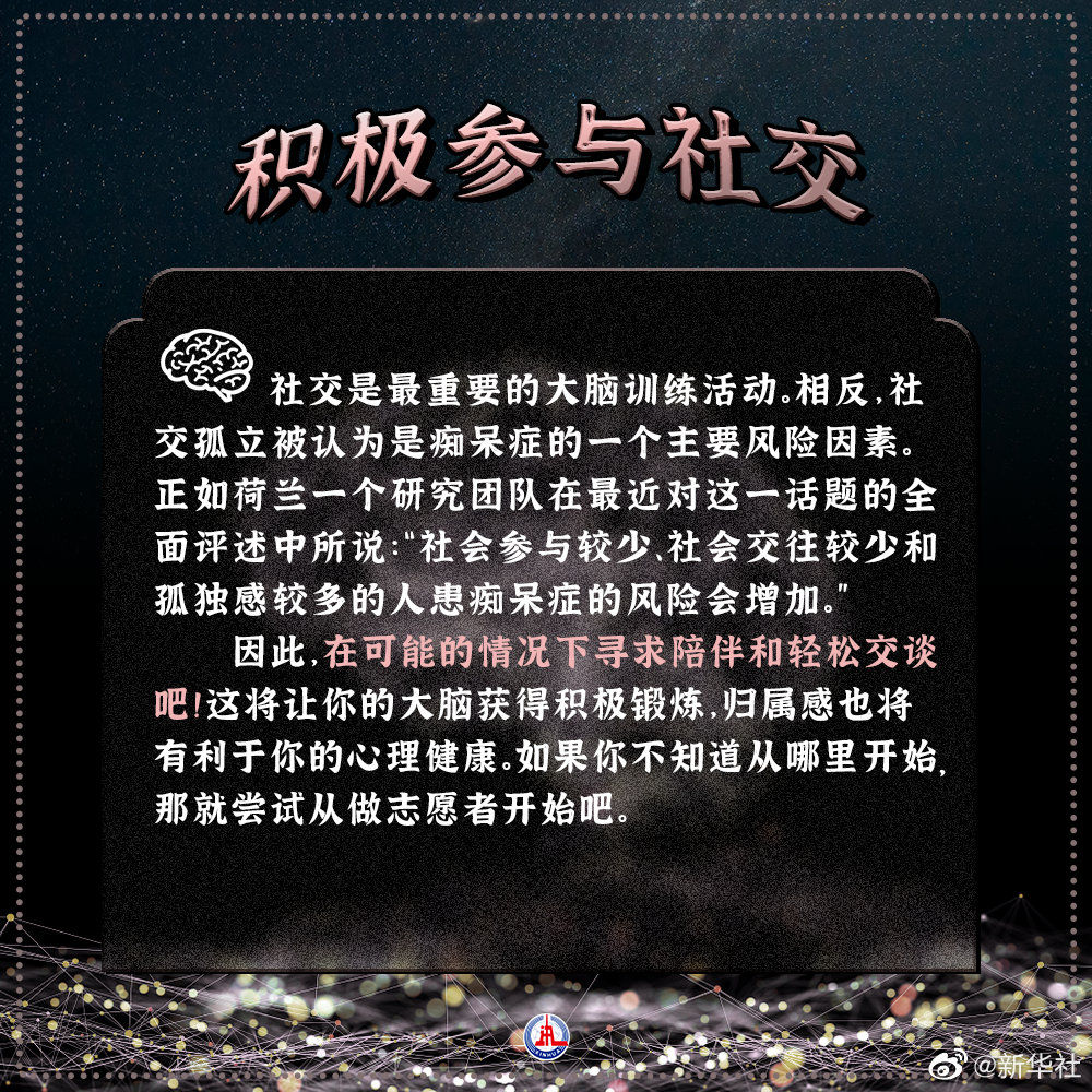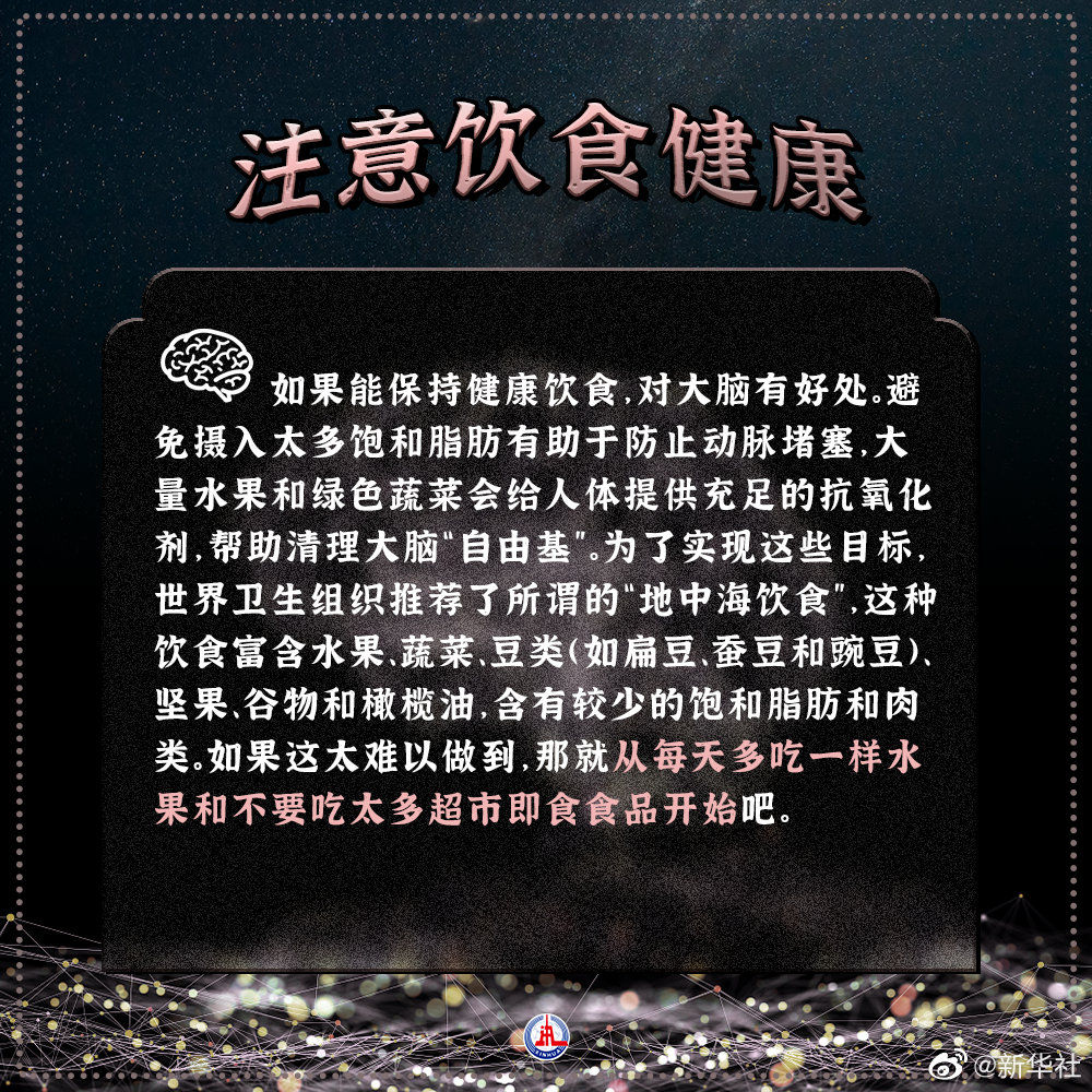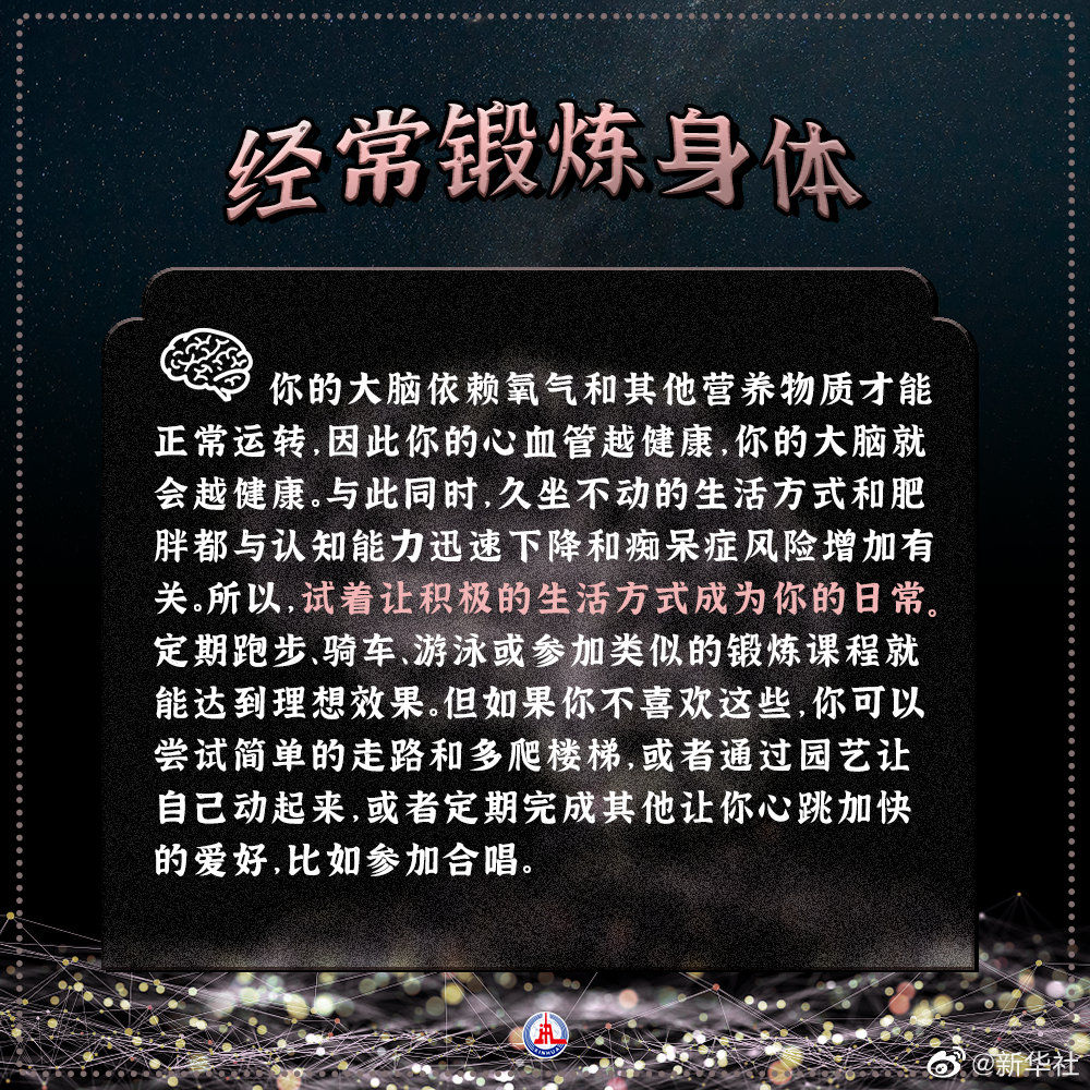 【揭秘!保持大脑健康敏锐的6个习惯】突然叫不出一个朋友的名字,心算速度变慢了……遇到这些情况你就要考虑一下大脑的健康状况了。并且在晚年,我们还存在因阿尔茨海默病等疾病导致痴呆症的风险。如何保持大脑健康?神经科学家表示,一些生活习惯可以帮助我们保持大脑敏锐,并保护自己不受认知速度的迟缓和痴呆症风险影响。(参考消息)