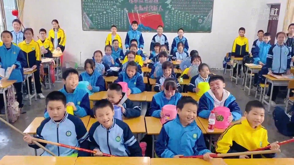 #一堂别开生面的音乐课#【#小学生音乐课用扫帚水桶课本当乐器#】日前,广西天峨县实验小学一名音乐教师就地取材,用扫帚、水桶、课本等作为教具,开启一堂别开生面的音乐课,备受学生欢迎。(记者黄浩铭,视频来源:广西天峨县实验小学) 新华社的微博视频