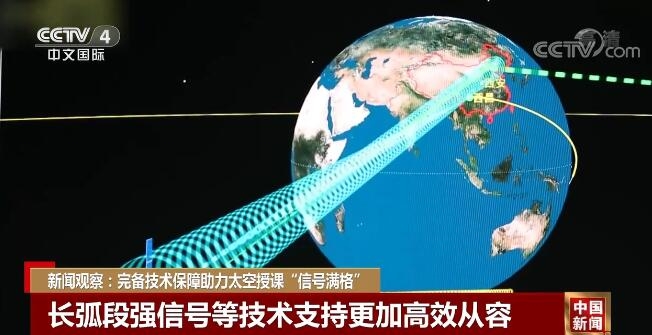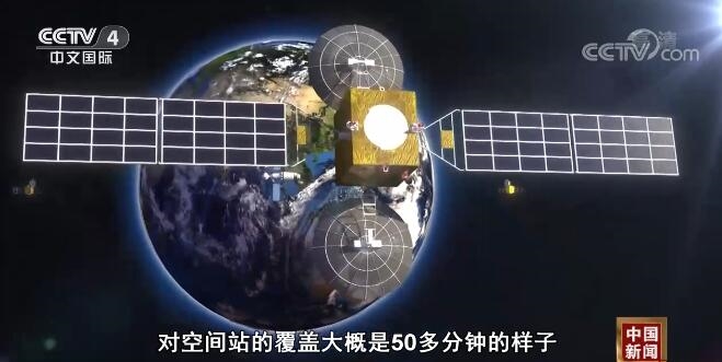 北京空间信息传输中心总工程师 单长胜:这次太空授课,我们是用中继的天链一号03星和天链二号01星来接力保障这次太空授课活动。一个星从最理想的情况下对空间站的覆盖大概是50多分钟的样子。