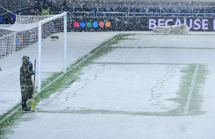 12月8日,一名工作人员清理球场积雪。