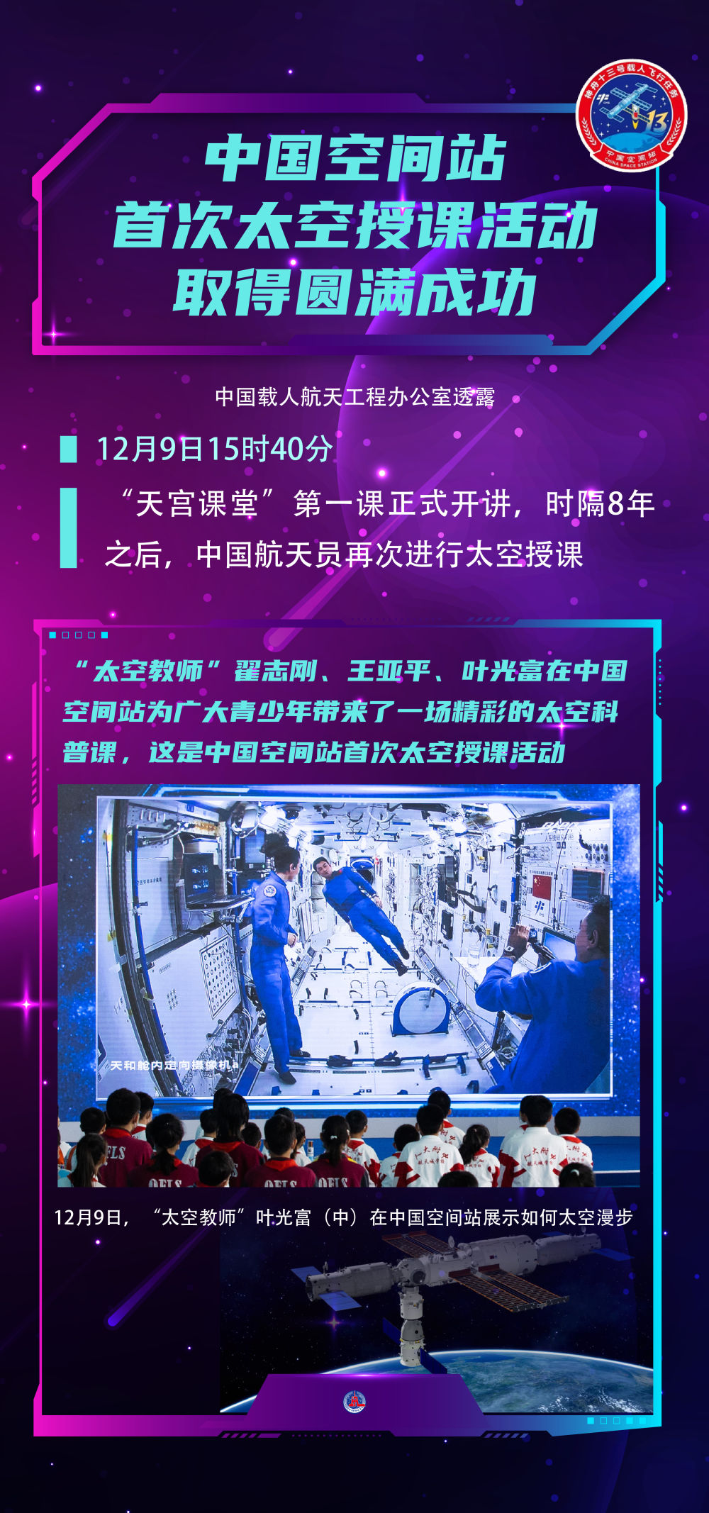 这是中国空间站首次太空授课活动