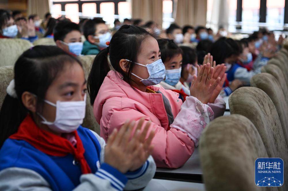 ↑12月9日,甘肃省陇南市康县城关第二小学学生在收看“天宫课堂”第一课。