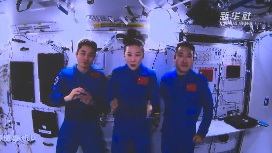 12月9日,神舟十三号乘组航天员翟志刚、王亚平、叶光富在空间站进行太空授课。