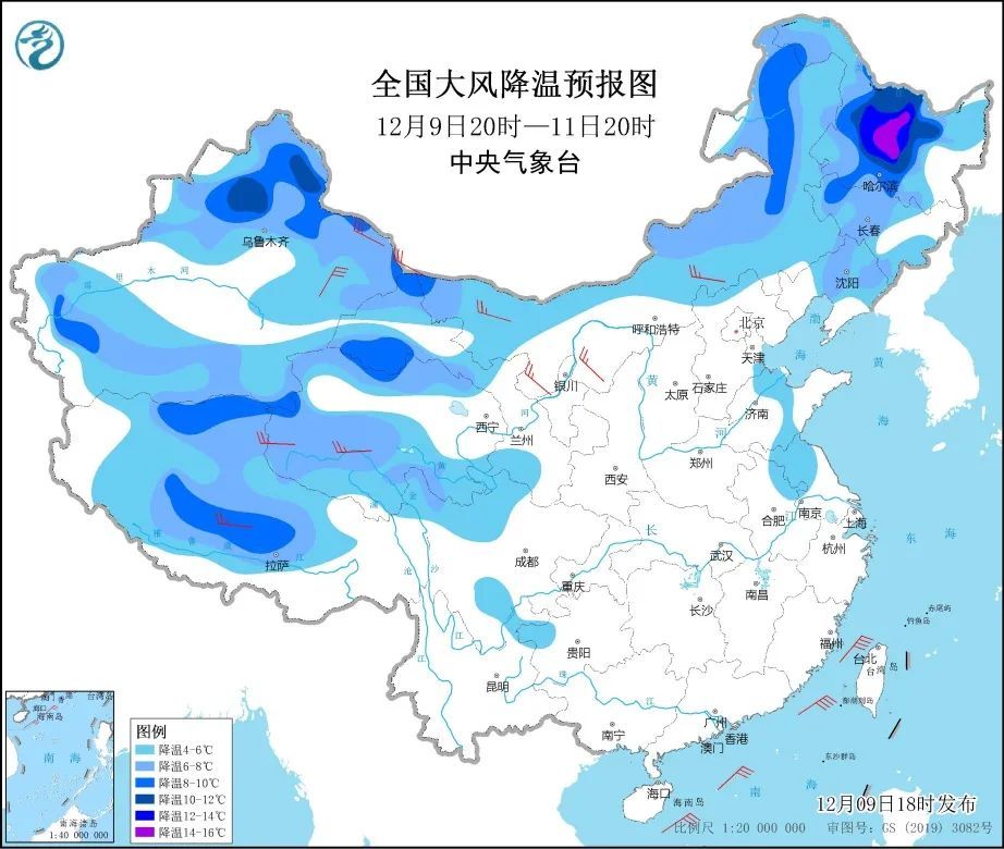 中央气象台9日18时发布大风降温预报:受冷空气影响,9日20时至11日20时,新疆、青藏高原、内蒙古大部及东北地区等地气温将下降4~6℃,其中新疆北部、西藏中部、黑龙江中北部等地的部分地区降温8~10℃,局地12℃以上。