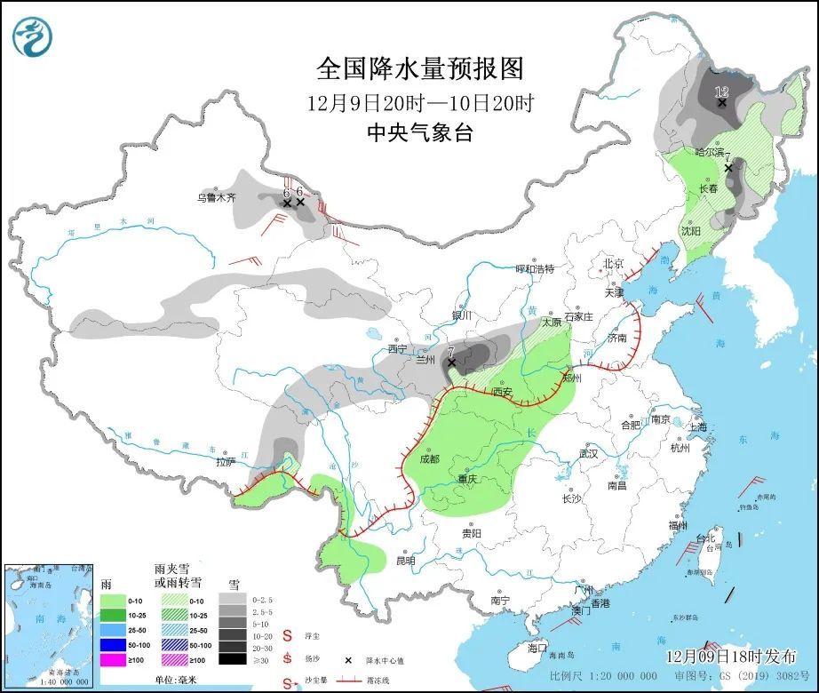 9日20时至10日20时,新疆沿天山地区和南疆盆地、西藏东部、青海东南部、甘肃东部、宁夏南部、陕西中部、东北地区等地部分地区有小到中雪或雨夹雪。吉林中西部、西藏东南部、陕西南部、山西南部、河南中西部、湖北西部、四川盆地、重庆、贵州北部、云南西部等地部分地区有小雨。