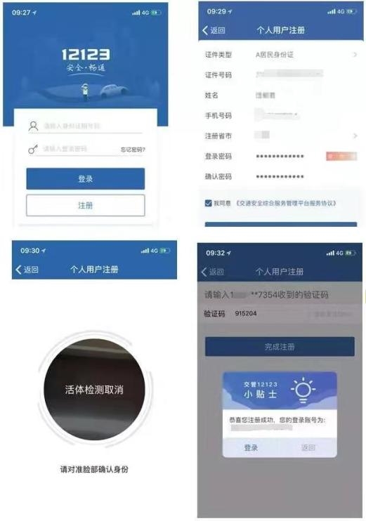 分为个人用户注册和单位用户注册。个人用户注册分为面签注册和在线注册,其中面签注册有两种方式:一是至公安网窗口办理现场面签。窗口面签时,申请人须携带本人有效的身份证明原件至指定窗口办理。二是通过“交管12123”APP完成实人认证注册(在线面签)。APP实人认证注册时,申请人须是二代身份证持有人,注册时根据APP提示,录入姓名、身份证号码、目前使用的手机号码,完成活体检测及远程人脸识别即可。个人用户面签注册成功后,即可结合个人需求使用APP所有有关功能。