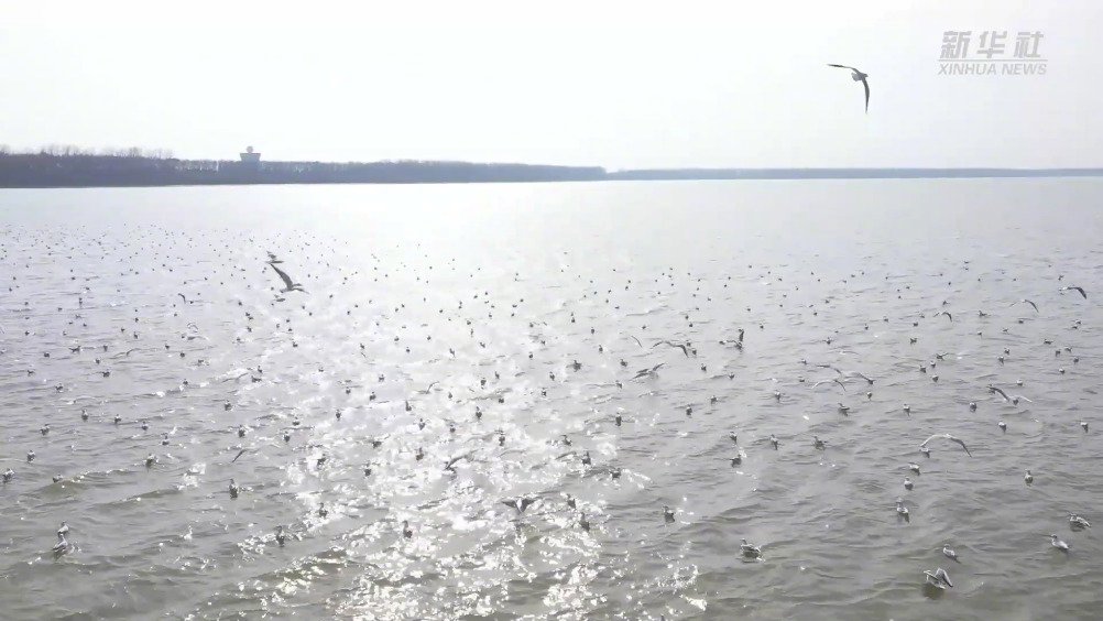【#江苏洪泽湖迎来大批越冬红嘴鸥#】12月8日,大批红嘴鸥飞抵江苏省淮安市洪泽湖古堰景区,在水面栖息觅食,场面蔚为壮观。近年来,随着洪泽湖退圩还湖、渔民上岸等一系列生态保护措施的实施,飞临洪泽湖的候鸟不断增多。 新华社的微博视频