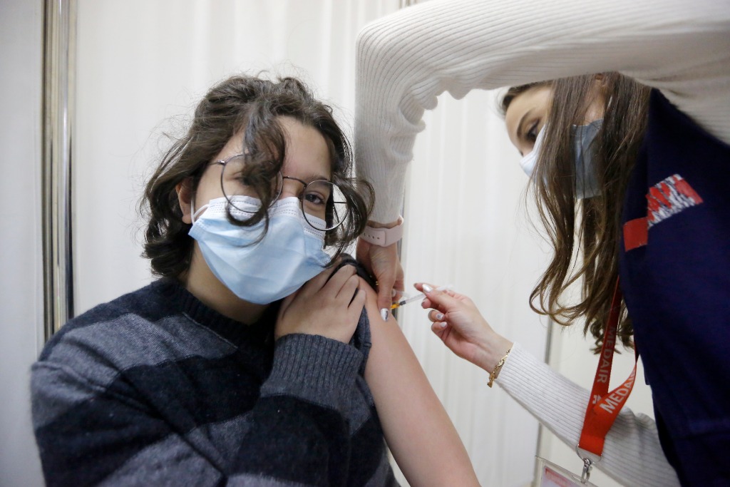 12月6日,一名中学生在黎巴嫩贝鲁特接种疫苗。(新华社发,比拉尔·贾维希摄)