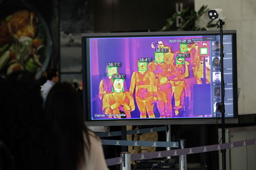 2020年3月26日,中国大华科技在墨西哥城装设的热成像测温系统。(弗朗西斯科·卡涅多摄)