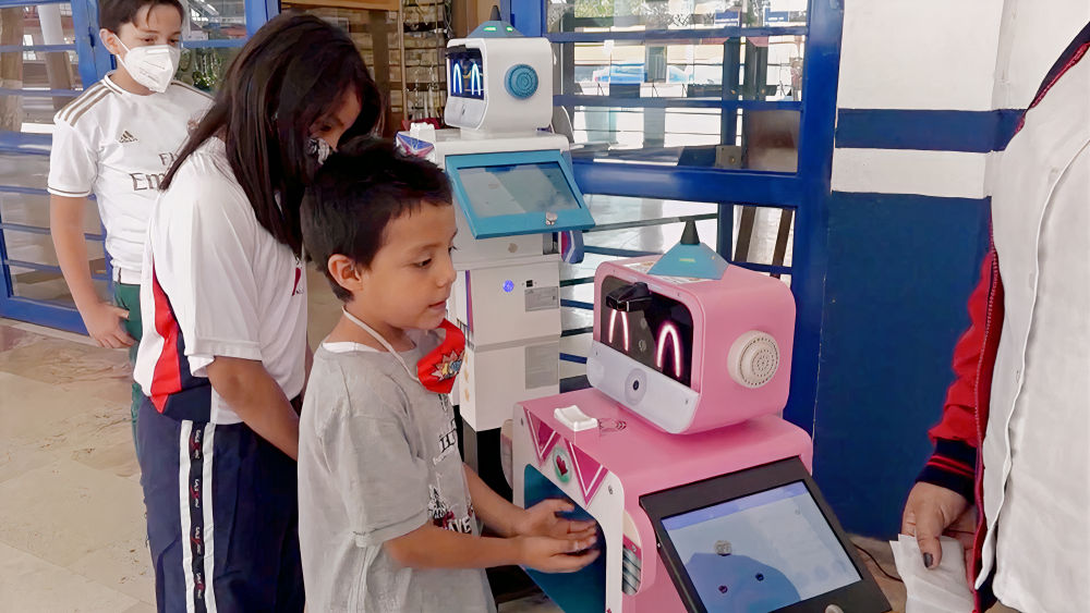 疫情期间,为确保学生复课的防疫安全,墨西哥中部克雷塔罗州的部分学校使用了来自中国的智能机器人辅助疫情防控。