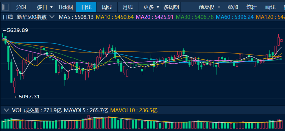 图为新华500指数(989001)日K线图