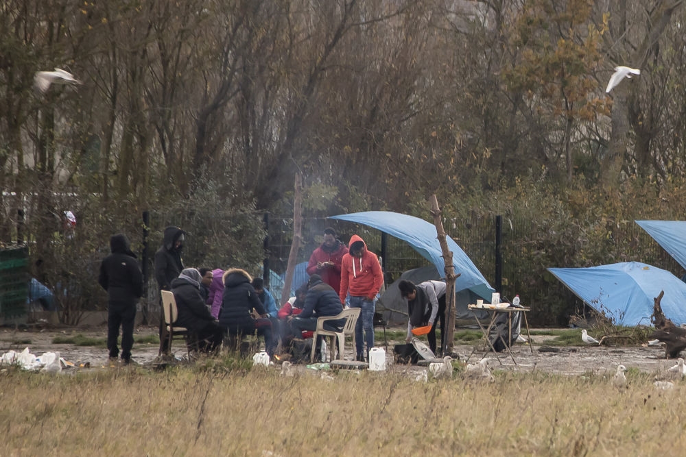 11月26日在法国北部加来港附近拍摄的非法移民。新华社发