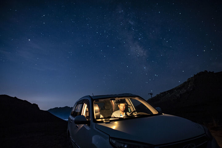 ▲长城保护员李世翔在宁夏银川市境内的三关口明长城露宿。李世翔家住宁夏海原县,2006年开始系统地研究、寻访长城。他发现,有一些长城隐匿在大山里,在地图上并未记载。李世翔先根据古籍和相关文献,确定长城可能存在的范围和走向,再在卫星地图上搜索,若发现可能存在长城的地方,就带上笔、本子、卷尺和干粮开车前往,徒步进山寻找。15年来,李世翔在宁夏和甘肃多地寻访,也驱车去过河北、内蒙古、陕西等地,研究长城的笔记写了三百多篇,拍摄了十几万张照片。