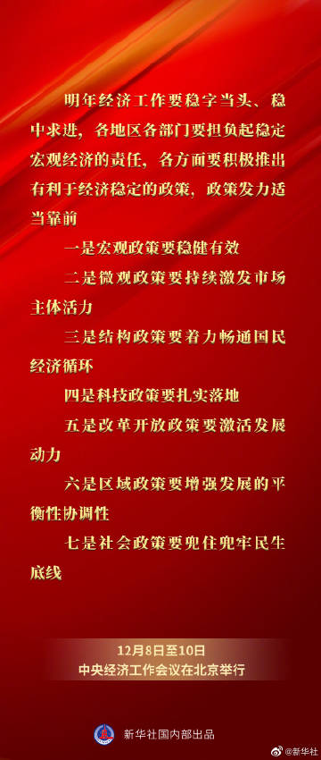 【#中央经济工作会议金句#】中央经济工作会议12月8日至10日在北京举行。网页链接