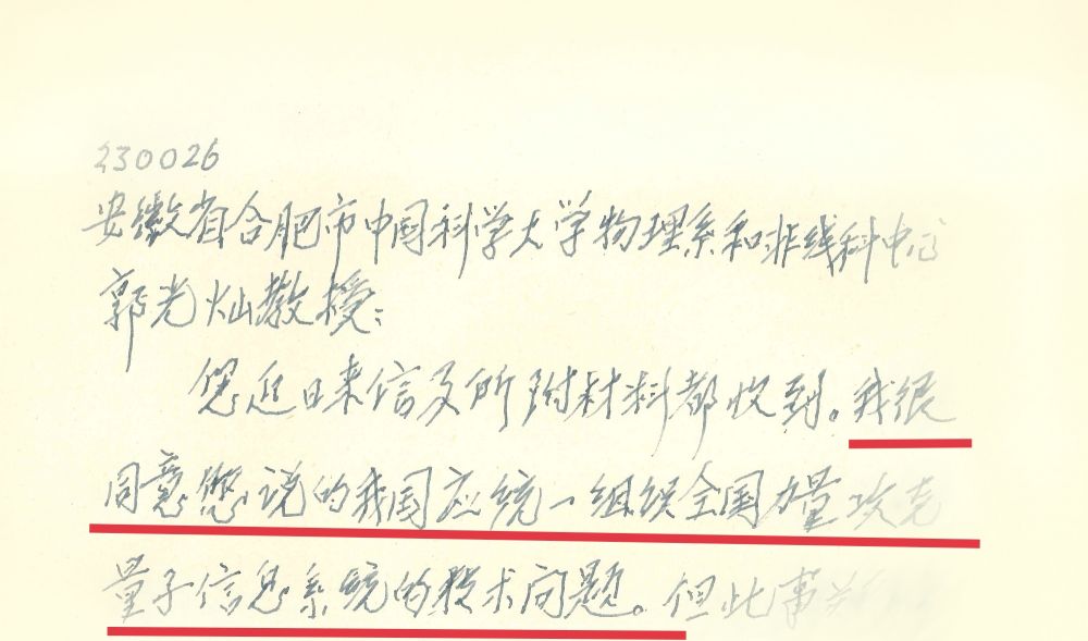 “您近日来信及所附材料都收到,我很同意您说的我国应统一组织全国力量攻克量子信息系统的技术问题。”钱学森在信中写道。