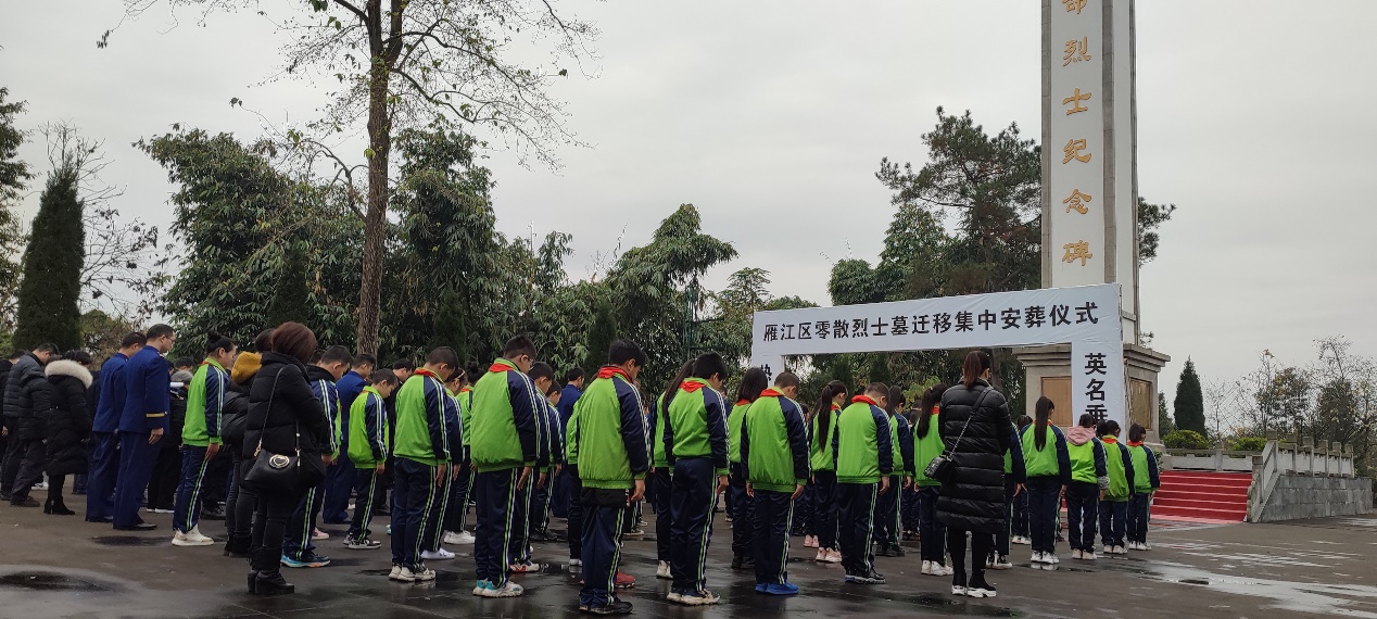 央视网消息(记者 何川 报道员 胡佳音):青山垂首悼英灵,郪水呜咽念忠魂。12月11日上午10时,国家公祭日前夕,四川省资阳市烈士陵园为3名零散烈士墓举行迁移集中安葬,让他们的尸骨和遗骸得到妥善安置。这3名烈士分别是剿匪牺牲的杨康烈士和在国防施工中牺牲的张志明、李光文烈士。安置仪式现场,资阳市雁江区各部门干部职工,雁江区小学师生及烈士亲属默哀肃立,为烈士敬献鲜花。