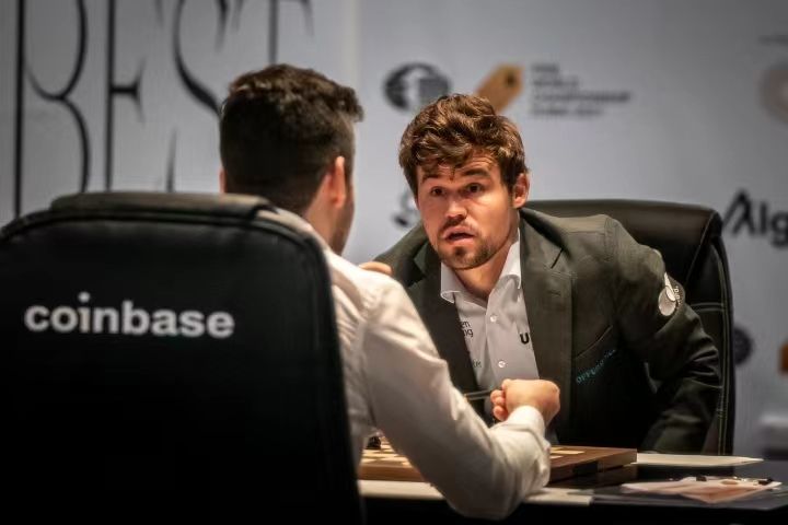 本次世界冠军赛原定于2020年进行,但由于疫情影响推迟一年在迪拜举办。自国际象棋世界冠军候选人赛八位棋手中脱颖而出的涅波姆尼亚奇成为此次卡尔森的对手。按照赛程,双方需进行14盘慢棋比赛,先得7.5分者获胜,若打平则进入快棋加赛。