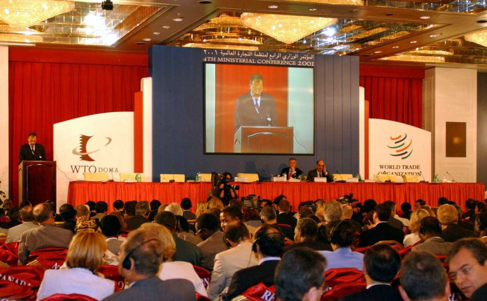 2001年11月10日,世界贸易组织第四届部长级会议在卡塔尔首都多哈以全体协商一致的方式,审议并通过了中国加入世贸组织的决定。新华社记者王建华摄