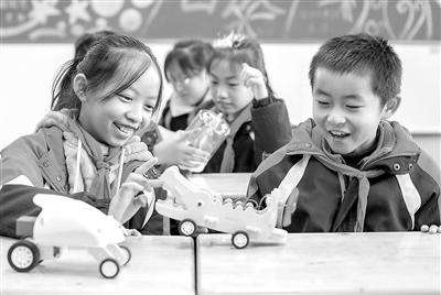 日前,江苏省海安市墩头镇吉庆小学学生在课后组装电动小汽车。翟慧勇 摄