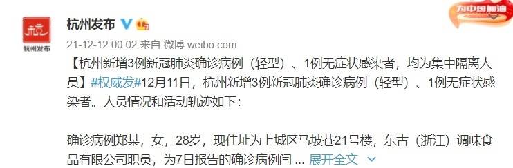 12月11日,杭州新增3例新冠肺炎确诊病例(轻型)、1例无症状感染者。人员情况和活动轨迹如下: