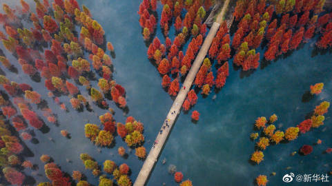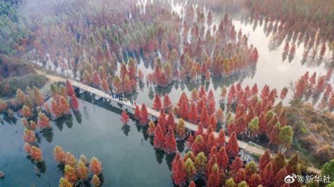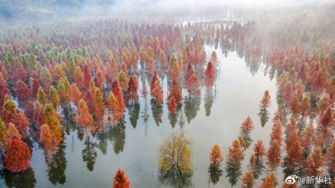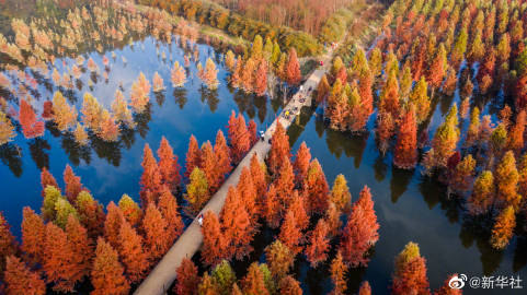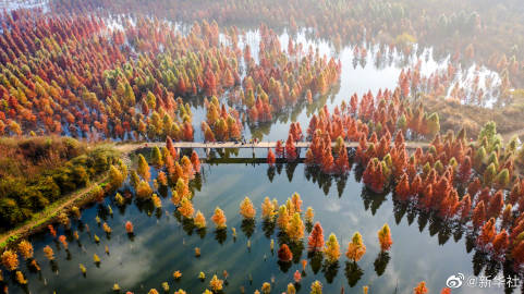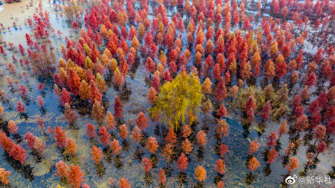 【#云南昆明水杉湿地美如画#】冬日,云南省昆明市盘龙区滇源街道甸尾村水杉湿地的水杉林色彩艳丽,景色如画。这片水杉湿地位于滇池上游、昆明松华坝水源保护区内。戳图一起来看看吧。