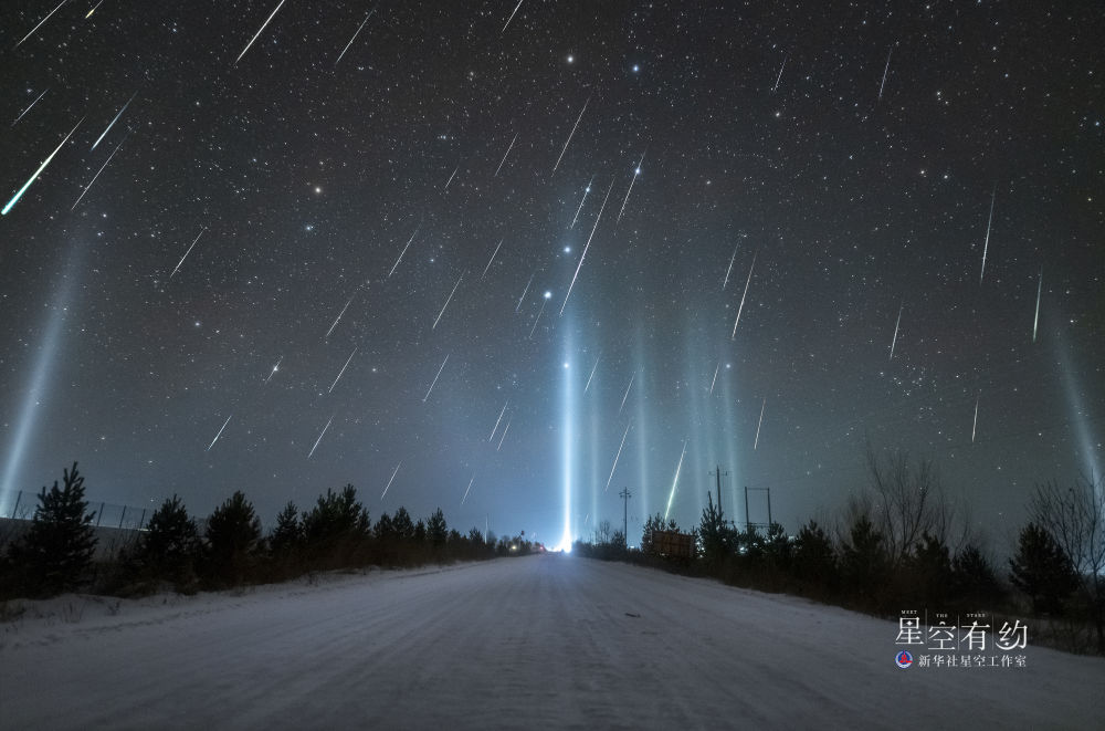 北京市天文爱好者蒋晨明2020年12月14日在内蒙古多伦县拍摄的双子座流星雨。(星联CSVA供图)